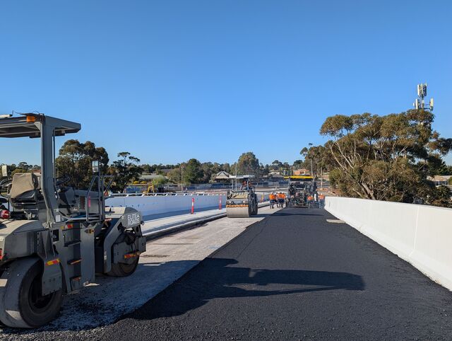 Asphalting of the road bridge in the heart of Diggers Rest – which is set to open next month – is underway as crews enter the final stages of removing the level crossing at Old Calder Highway.